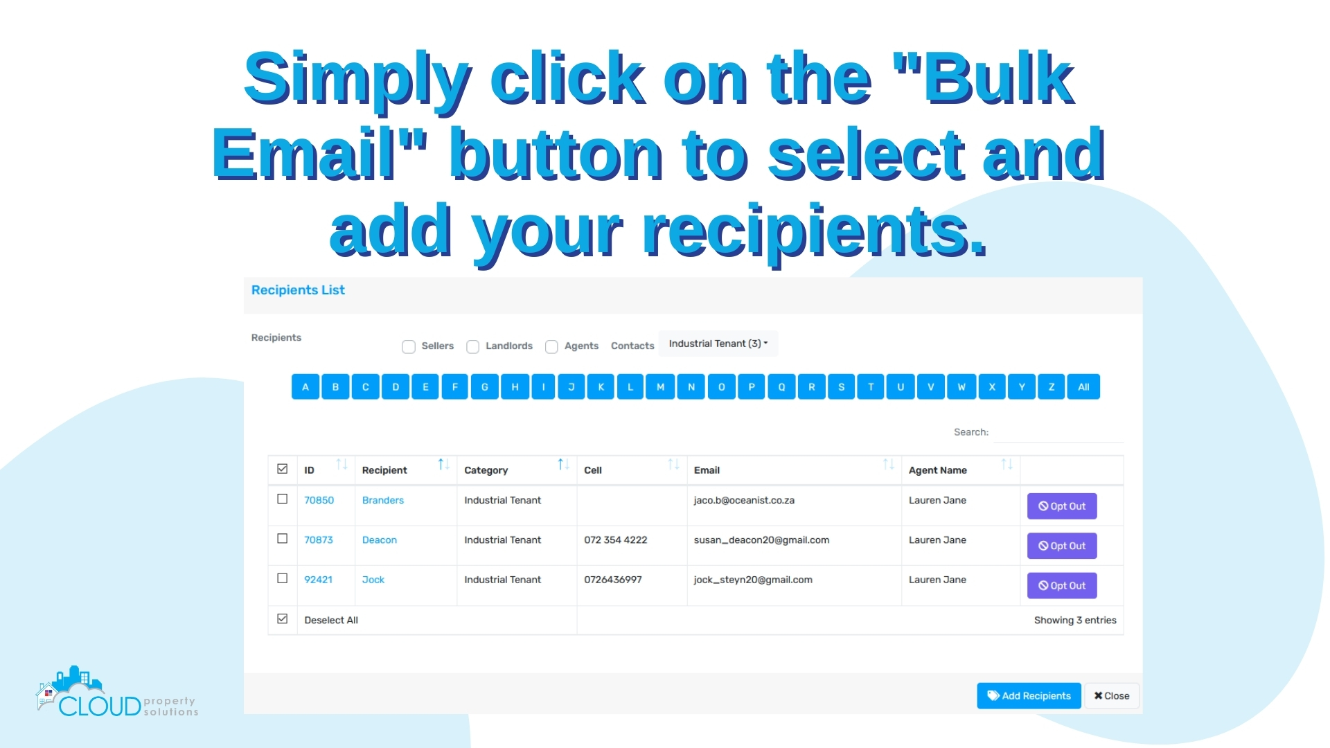 Bulk email functionality